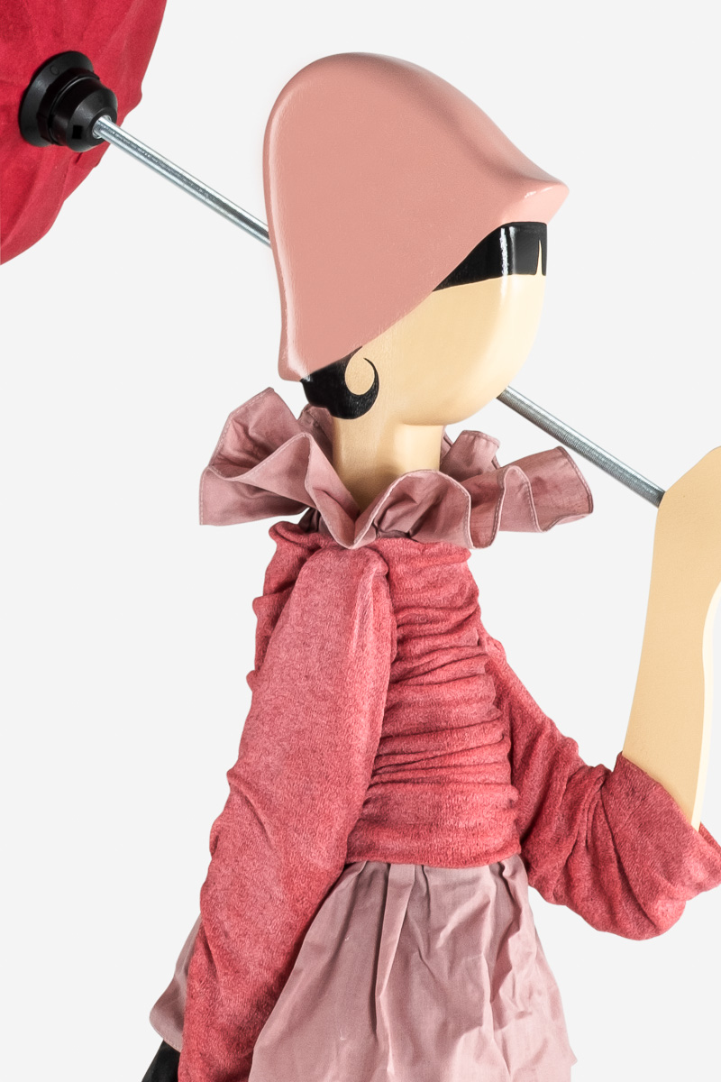Diese Lampe von Skitso zeichnet sich durch das ungewöhnliche Design aus. Eine Frau mit Schirm und Rock wird vom Winde verweht.