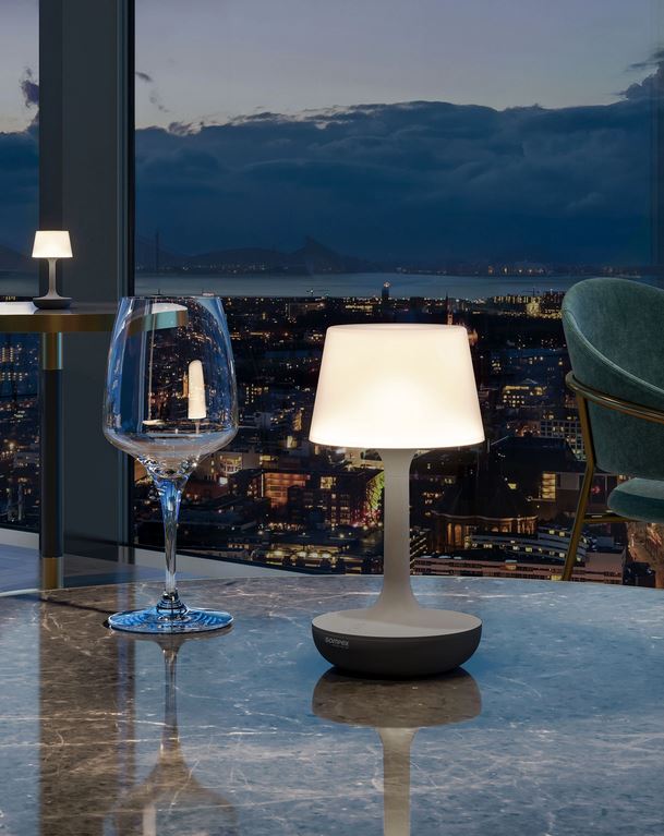 Die GINN - grau, RGBW-Akku-Tischleuchte von Sompex ist ein Spezialist für atmosphärisches Raumlicht. Durch innovative Technologie können verschiedene Lichtstimmungen erzeugt werden: 3 Weiß-Töne und 12 bunte RGB-Farbtöne. Das Design wirkt zeitlos elegant.