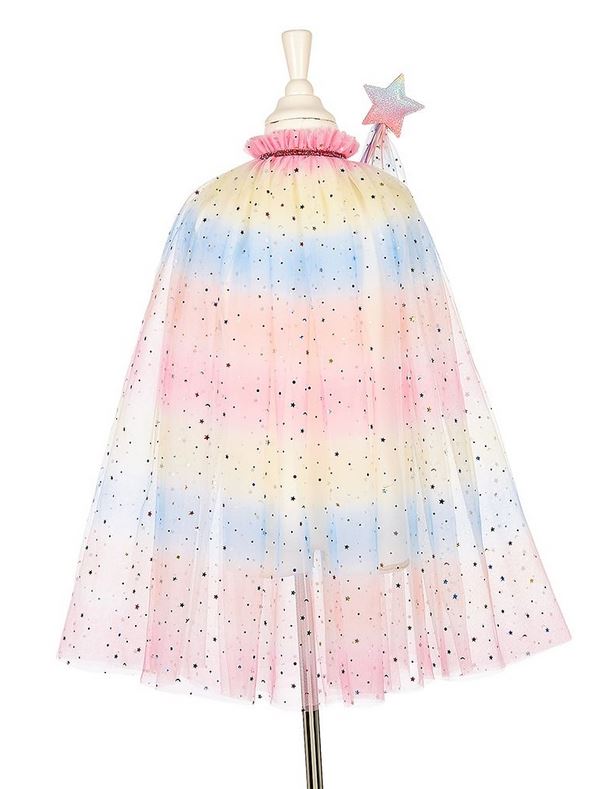 Das weiche Cape schimmert zart, das Diadem bringt ein bisschen Glanz ins Spiel und der Zauberstab darf natürlich nicht fehlen. Über einem Kleid, zur Jeans oder einfach schnell übergezogen für eine spontane Spielidee – sieht doch einfach gut aus, oder was meint ihr?