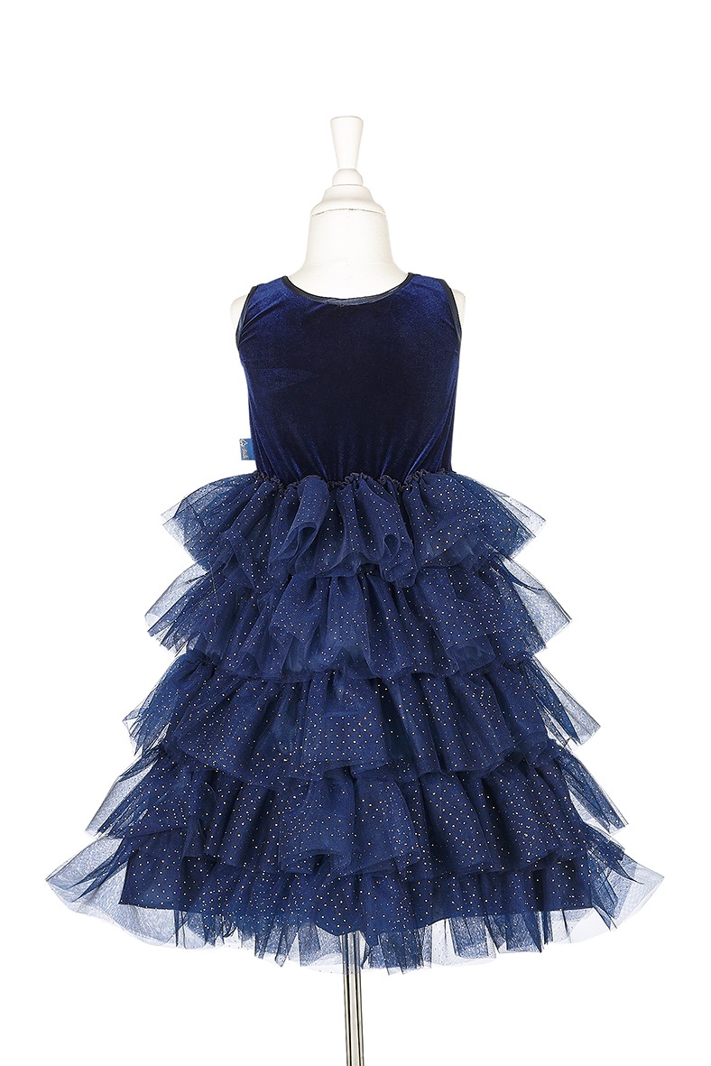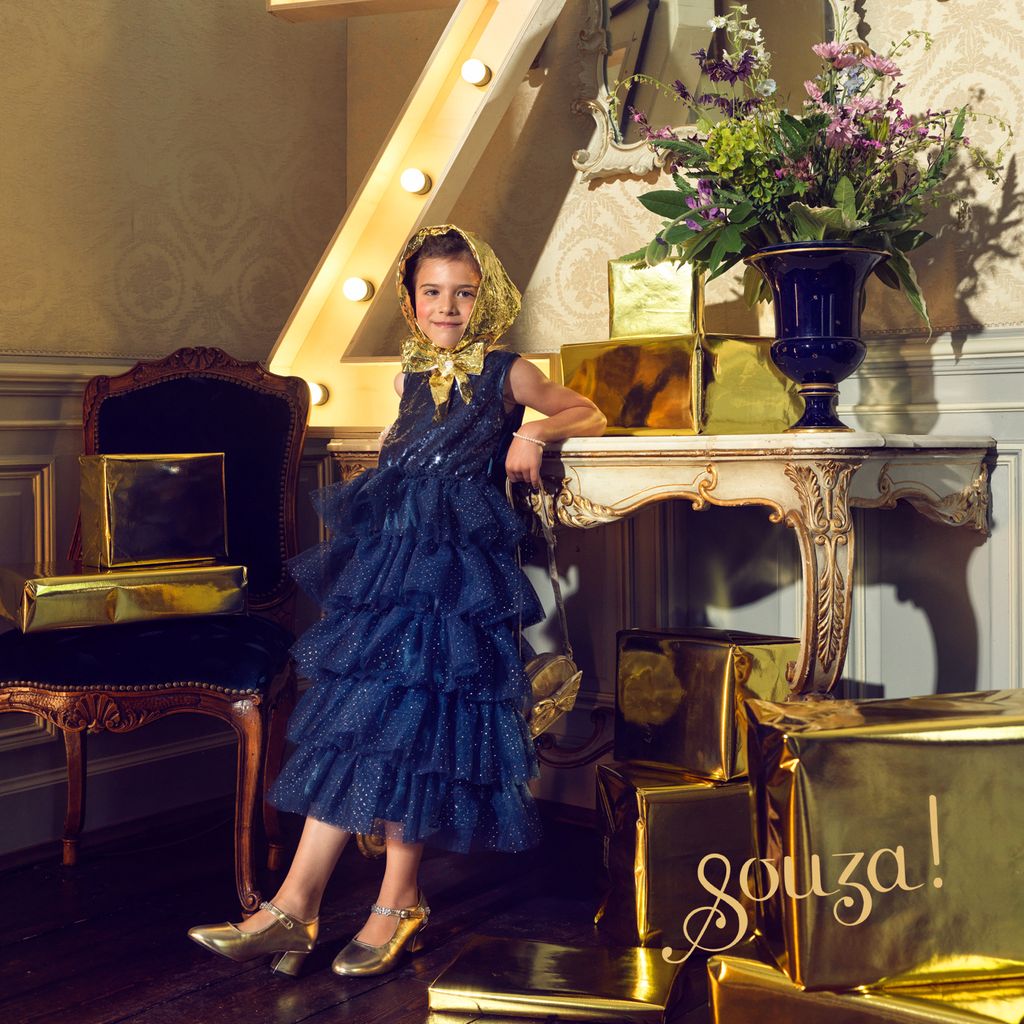 Das funkelnde Kleid Colette von Souza hat ein edles Pailletten-Oberteil und einen beeindruckenden Rock mit vielen Tüll-Volants! Darauf auch noch glitzernde Tupfen!