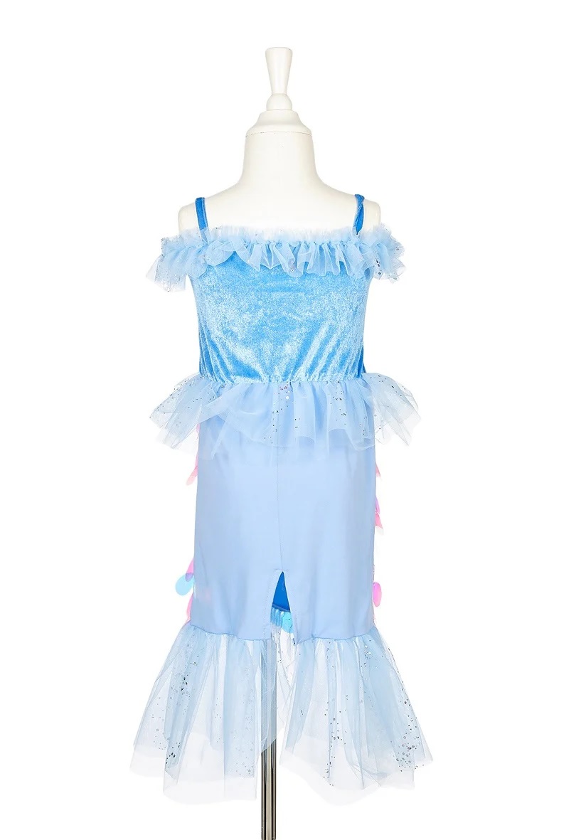 Die Souza for Kids Nixenkleid Lorelie entführt Meerjungfrauenfans tief in den Ozean. Magische Geschichten von Meerjungfrauen und ihren Freundinnen und Freunden lassen die Phantasie sprießen. Das Kleid hat funkelnde Plättchen am Rock und tolle Applikationen mit Seesternen am Oberteil.