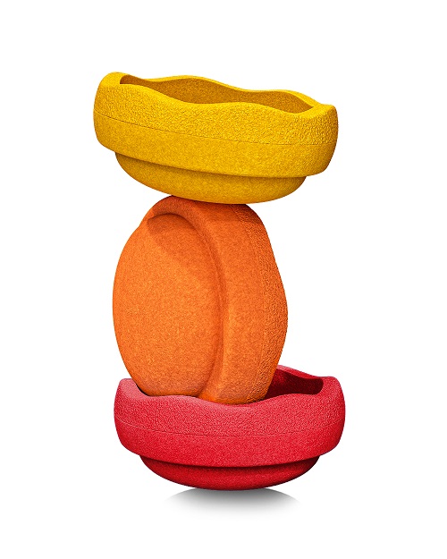 Das Stapelsteinset Original warm classic besteht aus 3 Stapelsteinen (1x gelb, 1x orange, 1x rot).
