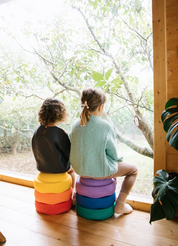 - Ältere Kinder können immer anspruchsvollere Balance-Parcours legen. Man kann in die Stapelsteine oder auf die Stapelsteine treten, Treppen bauen, sie mit anderen Elementen kombinieren. Versucht mal, mit drei Stapelsteinen über einen gedachten Fluß zu kommen.