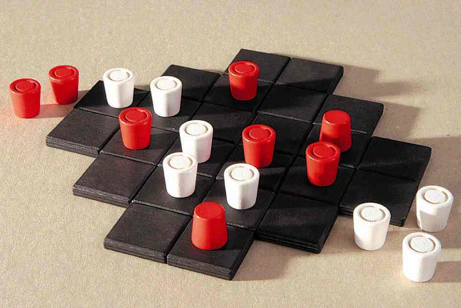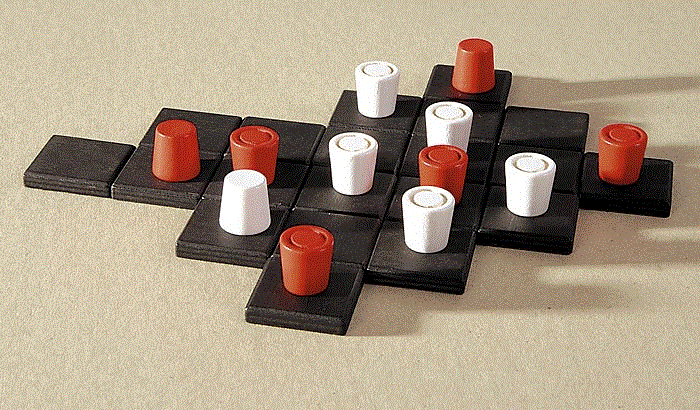 24 schwarze quadratische Holzplatten und 16 rote und weiße Spielsteine - das Spielmaterial von KARO ist einfach, handlich und ein ästhetisches Vergnügen. Und es bietet eine Vielzahl an Spielmöglichkeiten!
