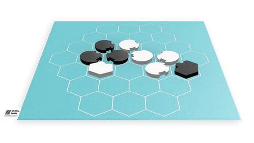 XOK von Steffen-Spiele ist ein taktisches Legespiel für zwei Personen. Xok mit den schwarzen und weißen Spielsteinen ist einfach zu erlernen und entwickelt eine taktische Tiefe: