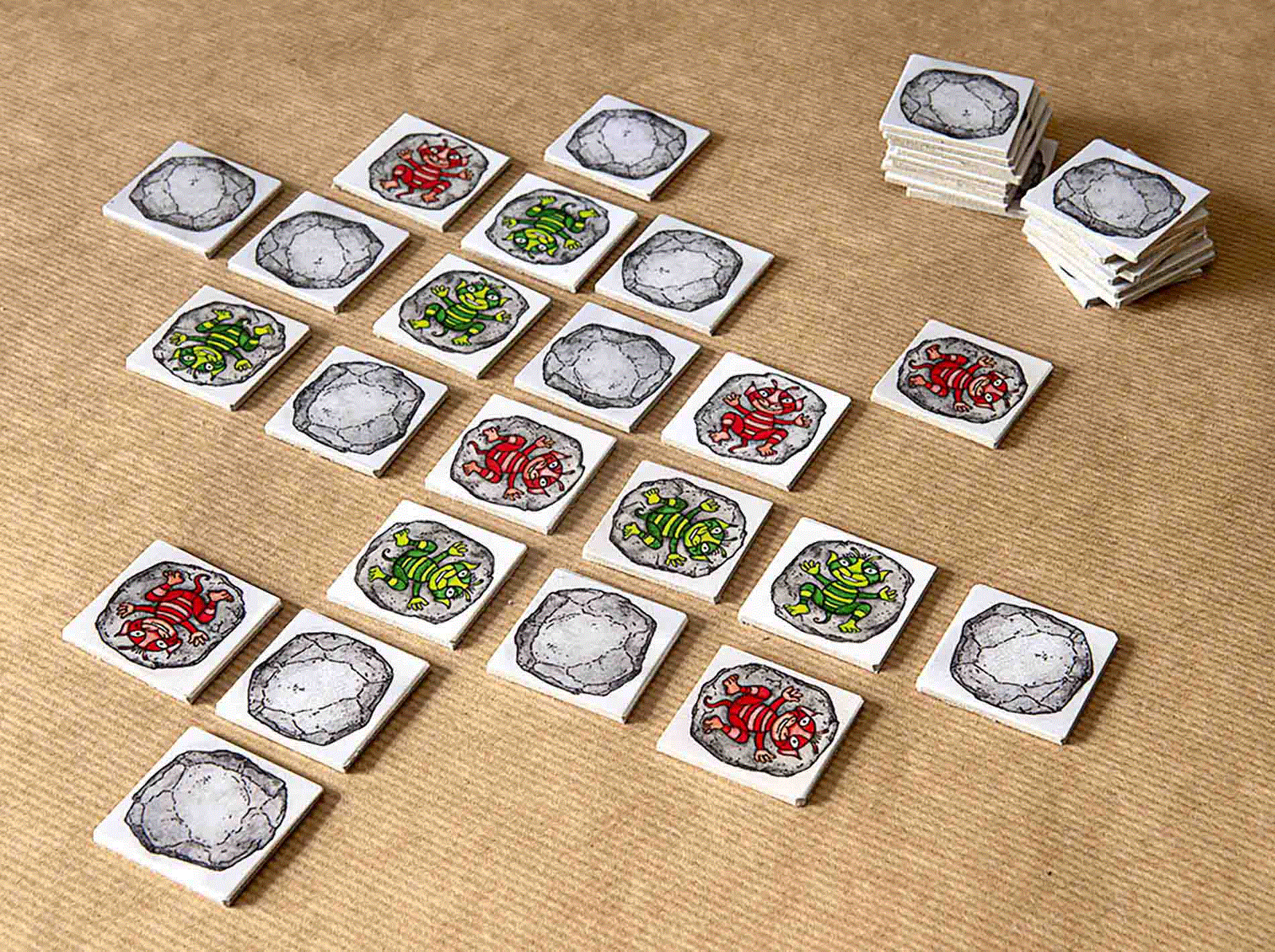 Die kleinen Zwoggel-Wesen sind zwar unheimlich süß, aber leider auch ganz schön lästig. Sie wohnen unter Steinen, aber deckt man drei gleiche Zwoggel nebeneinander auf, kommt ein Zwoggel mit dir mit. Wer drei Zwoggel hat, scheidet leider aus dem Spiel aus.