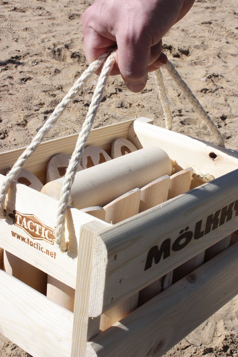 • Inhalt: 12 nummerierte Mölkky-Hölzer, 1 Wurfholz, 1 Transportkiste