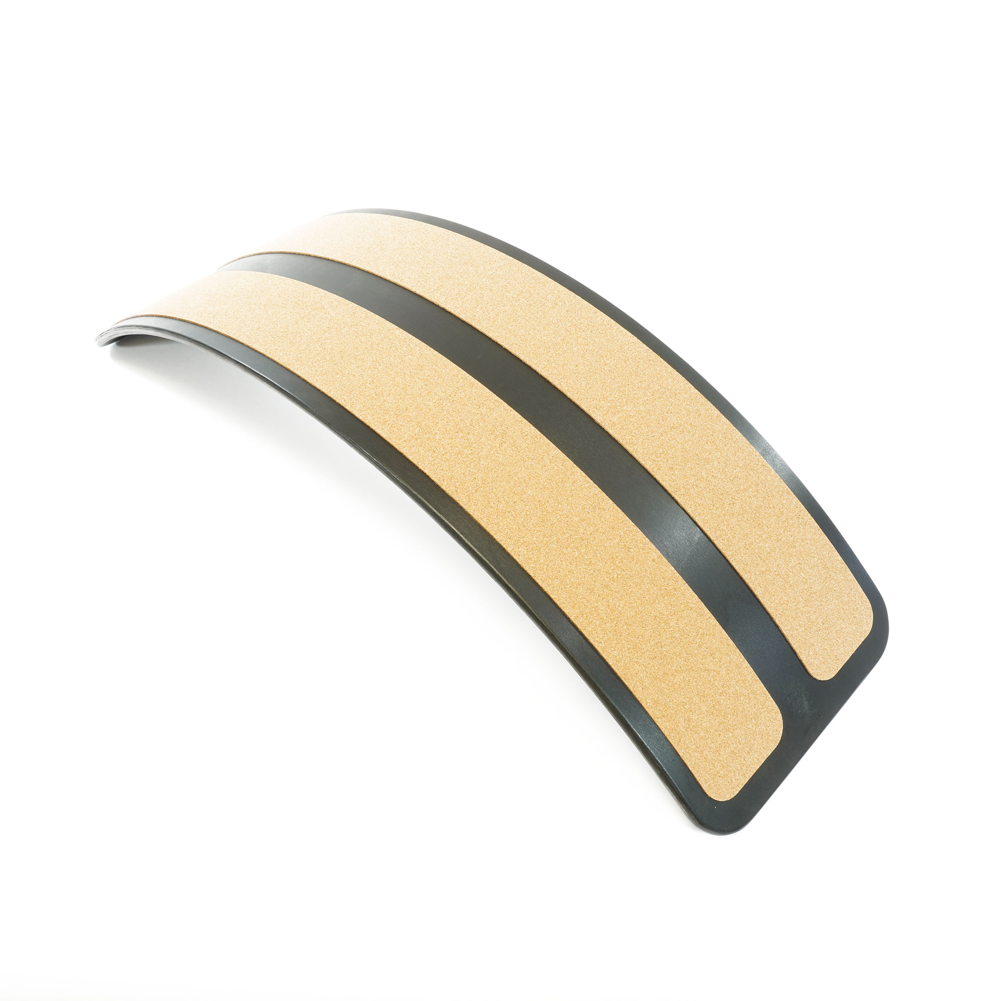 Balanceboard das.brett hier in der schwarzen Version MIT Korkauflage an der Unterseite. Die Korkunterlage eignet sich besonders bei harten Untergründen wie Fliesen, Laminat oder Parkett. Sie schont den Fußboden, verhindert ein schnelles Wegrutschen und dämmt Geräusche.