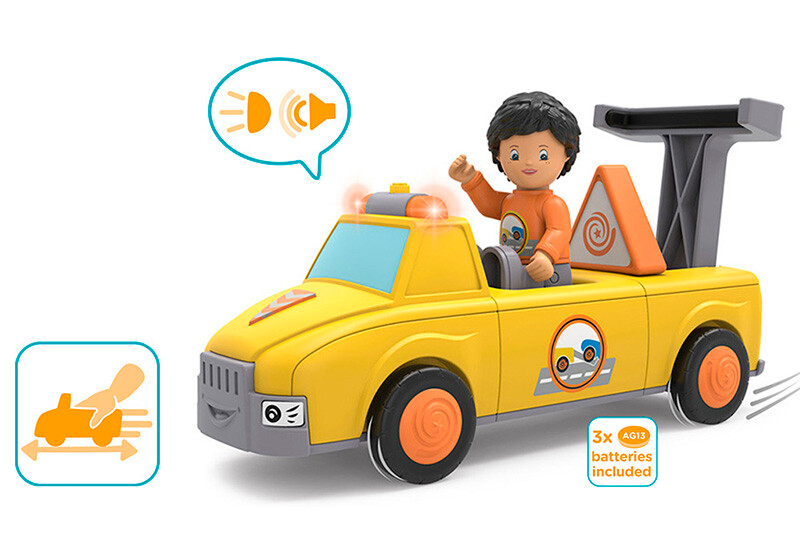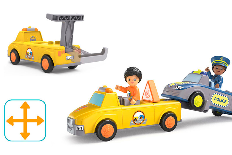 • 3-teiliges Abschlepp-Fahrzeug und 1 Spielfigur