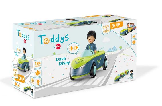 Ein Toddy-Fahrzeug lässt sich durch einen einfachen Dreh-Klick-Mechnismus in Teile zerlegen und kann mit weiteren Toddys-Fahrzeugen kreativ kombiniert werden. Die wandlungsfähigen Toddys haben einen Friktionsmotor (Schwungmotor) und lassen sich einfach super bespielen. Die Spielfigur kann sitzen und stehen sowie die Arme und den Kopf bewegen. Wie ihr vielleicht schon an den Steckverbindungen auf den Fahrzeugen entdeckt habt, kann man man die Toddy-Bauteile auch mit anderen Steckbausteinen bzw. Klemmbausteinen kombinieren.