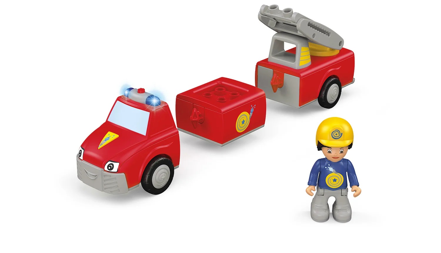 • 3-teiliges Feuerwehr-Fahrzeug und 1 Spielfigur
