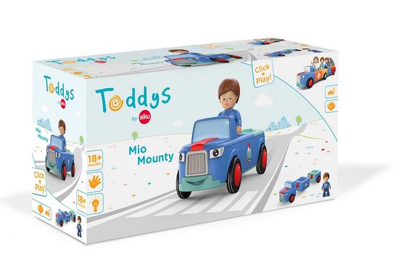 Ein Toddy-Fahrzeug lässt sich durch einen einfachen Dreh-Klick-Mechnismus in Teile zerlegen und kann mit weiteren Toddys-Fahrzeugen kreativ kombiniert werden. Die wandlungsfähigen Toddys haben einen Friktionsmotor (Schwungmotor) und lassen sich einfach super bespielen. Die Spielfigur kann sitzen und stehen sowie die Arme und den Kopf bewegen. Wie ihr vielleicht schon an den Steckverbindungen auf den Fahrzeugen entdeckt habt, kann man man die Toddy-Bauteile auch mit anderen Steckbausteinen bzw. Klemmbausteinen kombinieren.