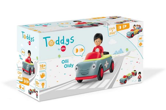 Ein Toddy-Fahrzeug lässt sich durch einen einfachen Dreh-Klick-Mechnismus in Teile zerlegen und kann mit weiteren Toddys-Fahrzeugen kreativ kombiniert werden. Die wandlungsfähigen Toddys haben einen Friktionsmotor (Schwungmotor) und lassen sich einfach super bespielen. Die Spielfigur kann sitzen und stehen sowie die Arme und den Kopf bewegen. Wie ihr vielleicht schon an den Steckverbindungen auf den Fahrzeugen entdeckt habt, kann man man die Toddy-Bauteile auch mit anderen Steckbausteinen bzw. Klemmbausteinen kombinieren.