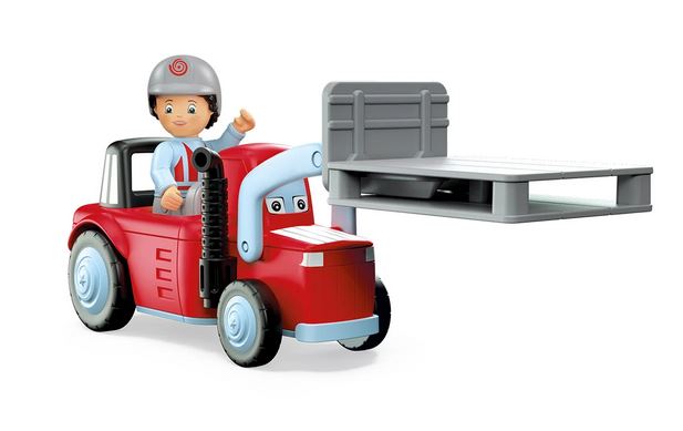 • 2-teiliges Gabelstapler-Fahrzeug, 1 Palette und 1 Spielfigur