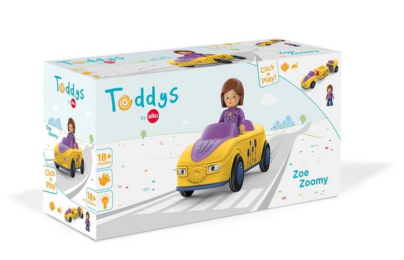 Ein Toddy-Fahrzeug lässt sich durch einen einfachen Dreh-Klick-Mechnismus in Teile zerlegen und kann mit weiteren Toddys-Fahrzeugen kreativ kombiniert werden. Die wandlungsfähigen Toddys haben einen Friktionsmotor (Schwungmotor) und lassen sich einfach super bespielen. Die Spielfigur kann sitzen und stehen sowie die Arme und den Kopf bewegen. Wie ihr vielleicht schon an den Steckverbindungen auf den Fahrzeugen entdeckt habt, kann man man die Toddy-Bauteile auch mit anderen Steckbausteinen bzw. Klemmbausteinen kombinieren.