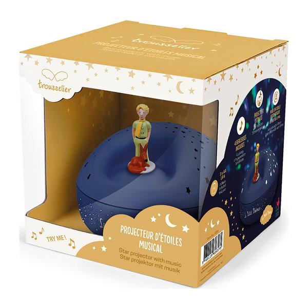 Das Nachtlicht mit Sternen-Projektor Kleiner Prinz von Trousselier schafft eine beruhigende Einschlafatmosphäre. Er spendet ein gedämpftes, beruhigendes Licht, der kleine Prinz dreht sich entspannend und bringt Kinder ins Reich der Träume.