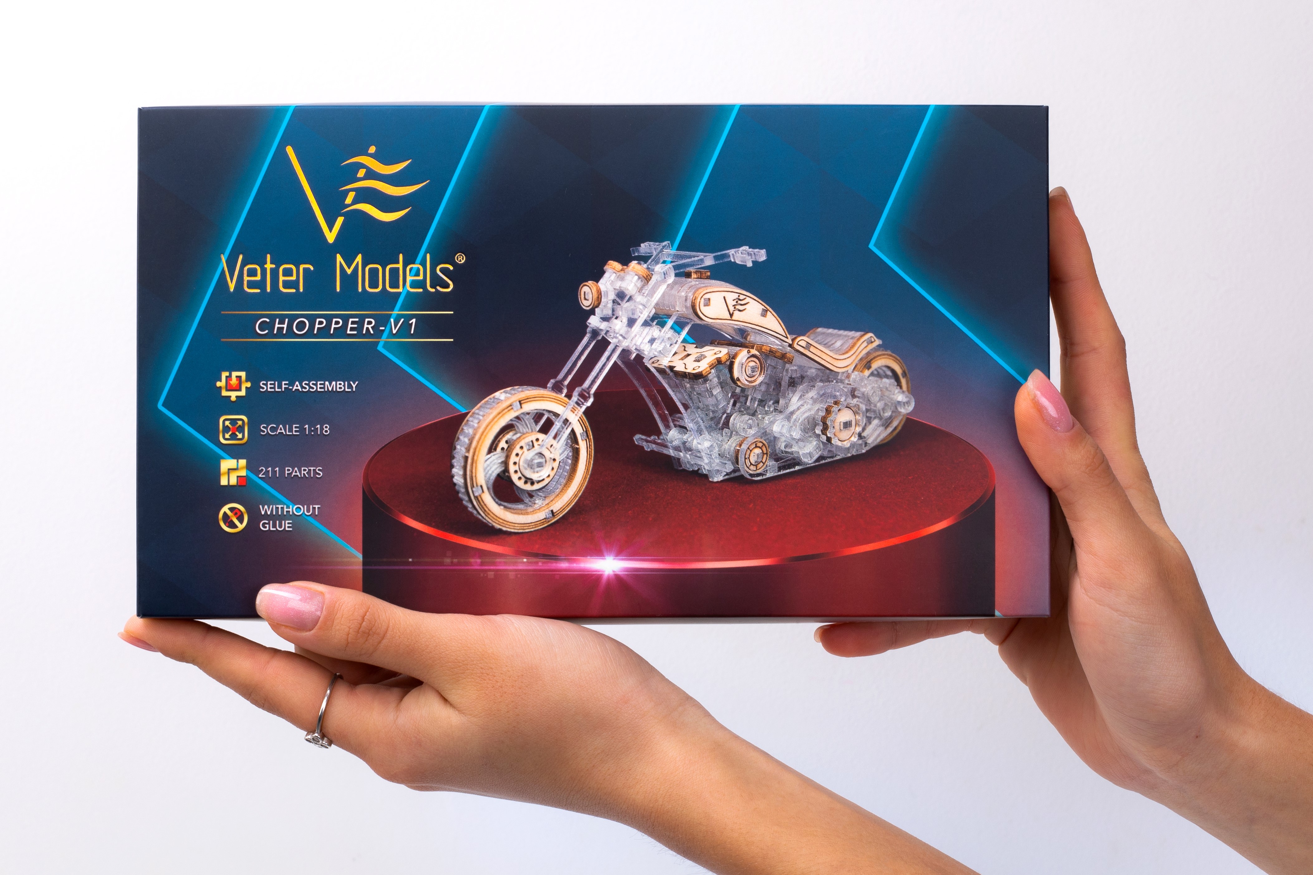 Das Veter Model Chopper V1 begeistert alle Motorrad- und Bastel-Fans. Der Chopper-Bausatz ist in einem tollen Retro-Design gehalten und sorgt für spannende Stunden sowie eine tolle Dekorations-Möglichkeit. Teil für Teil wird das Motorrad zusammengebaut, das anschließend mit Hilfe der eingebauten Feder vor- und rückwärts fährt. Details wie die durchsichtigen Bauteile sorgen dafür, dass das Modell und seine Mechanik mit viel Spielfreude erkundet werden können.