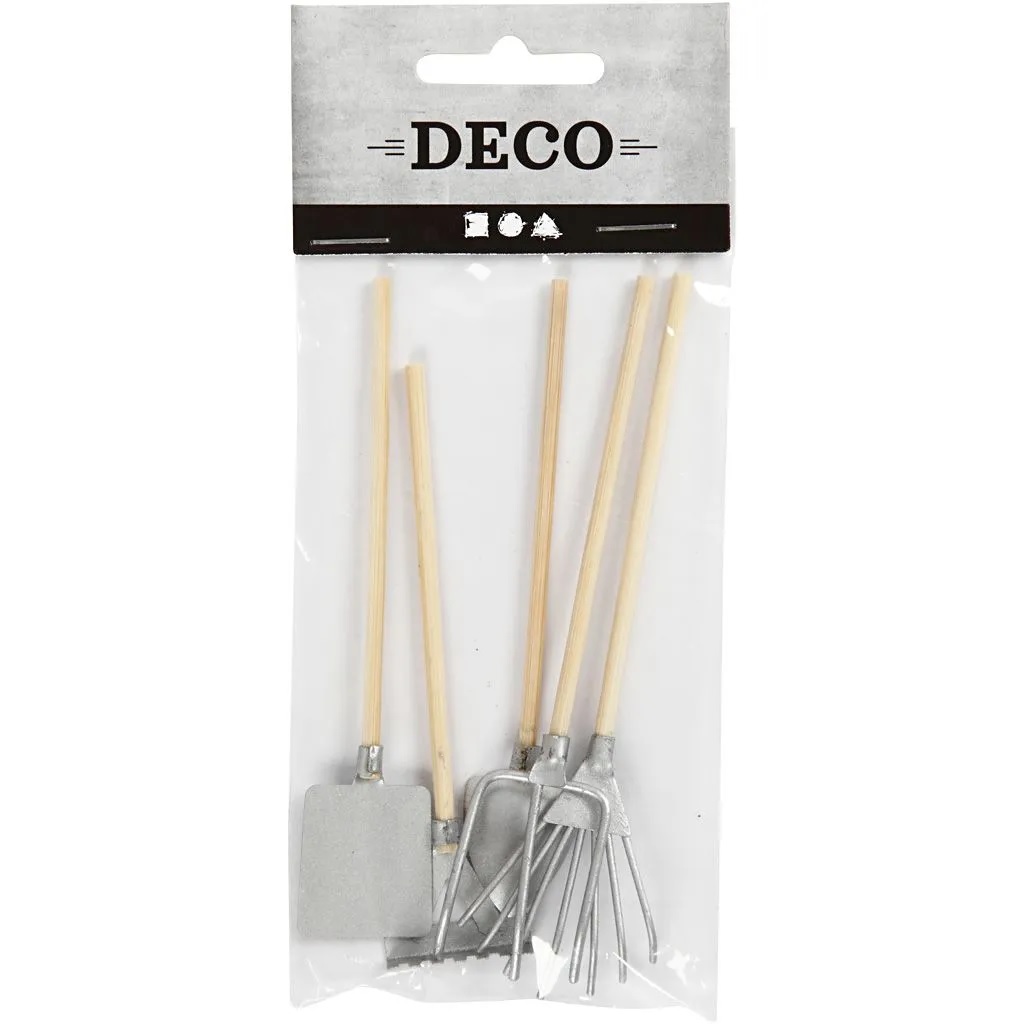 Die niedlichen Miniaturausgaben von Gartengeräten sind wunderbar als Dekoration vor deiner Wichteltür. Vielleicht kommen sie auch mal im Puppenhausgarten zum Einsatz oder in einem Moosgärtchen.