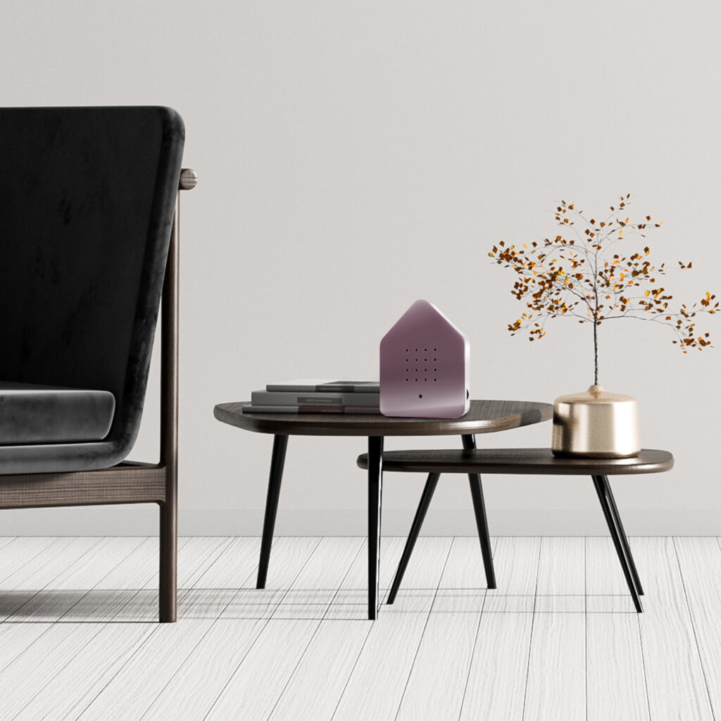 Hier die Zwitscherbox mit der Frontfarbe Mauve, passend zu vielen Einrichtungsstilen.