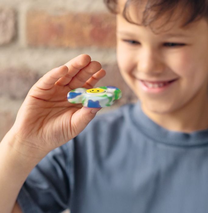 Einfach zwischen Daumen und Zeigefinger nehmen, drehen – und schon sorgt der bunte Spinner für Spaß und Entspannung beim Lernen. Ganz nebenbei radiert er zuverlässig kleine Fehler weg.