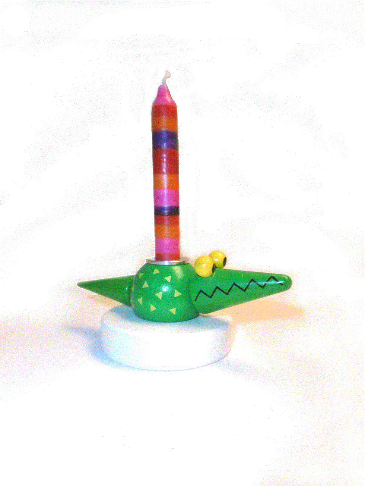 Das tolle grüne Krokoldil trägt eine Kerze für das Geburtstagskind! Man kann jede handelsübliche Geburtstagskerze hineinstecken, wobei die Aluschalen zu empfehlen sind, damit sie viele Jahre Freude an ihren Haltern haben.Diese Steckfigur mit Loch für den Geburtstagskranz ist ca. 8 Zentimeter lang und 5cm hoch (incl. Stecker) und ergänzt den rundum-Geburtstagsring sehr gut. Die rundum-Geburtstagsstecker passen aber auch in viele andere Systeme,der Durchmesser des Steckzylinders beträgt 1,7cm.